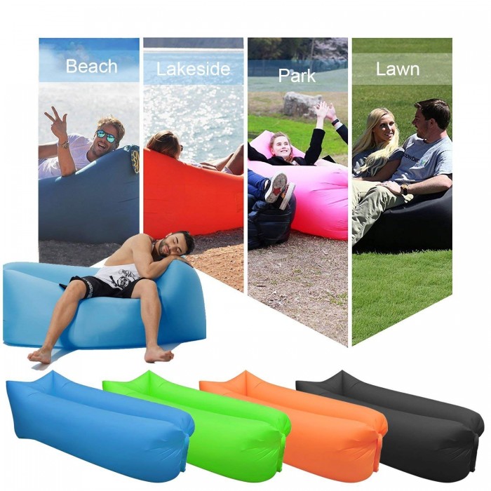 الآن ومع حلول الصيف متوفر الأريكة أوالفراش القابل للنفخ. المنتج حقق شهرة عالمية يأتي في حقيبة صغيرة سهلة النقل، تتحول في ثوان إلى مقعد أو فراش مريح. مناسبة لجيع الأماكن (الرمل ، العشب ، الصخور ، الماء ...) يمكنك لأخذها معك أينما كنت: الشاطئ، الحديقة ، الصحراء أو الجبال. **علما أن المنتج أصلي 100% و ذو جودة علية و يحتوي على غلافين مضاعفين لزيادة قوته